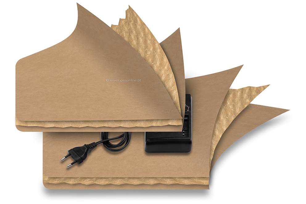 - Papel de 3 camadas; camada intermédia de papel kraft castanho de 100 gr comestrutura de enchimento de papel
